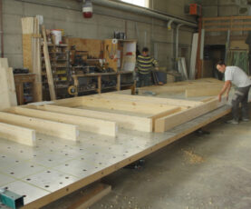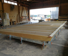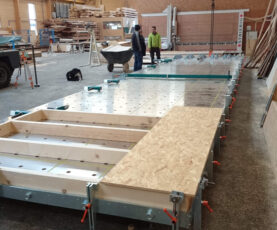 Instead of delivering CLT to the construction site, as much as possible is now prefabricated in the hall, thanks to their assembly table and joinery system,